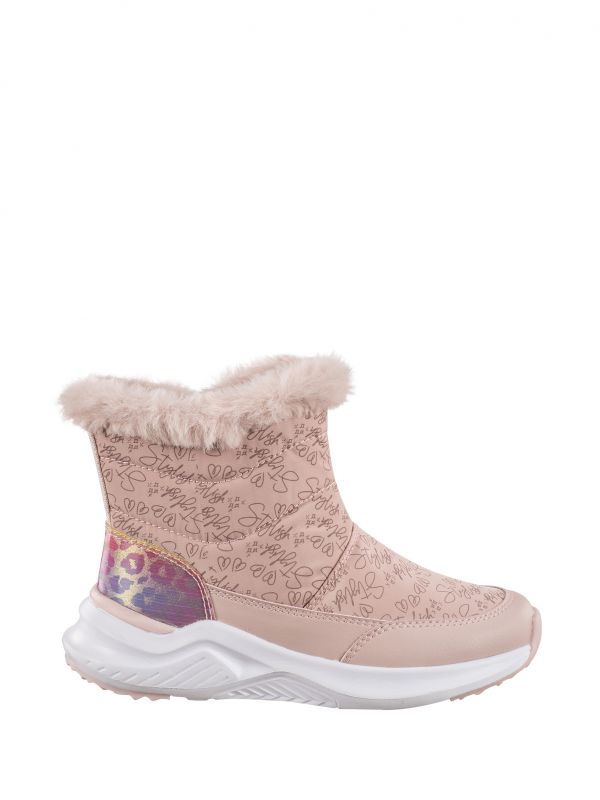 מגפון לבנות מדליק עשוי בד ופרווה סינטטית.סוליה קלה ונוחה.