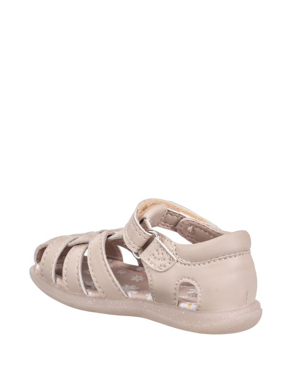 סנדל צעד שני לבנות, עשוי תחליפי עור איכותיים, מגיע בגזרה חדשה עם סוליה שקופה ומנצנצת, סגירת שני סקוצ’ים והדפס מדליק.