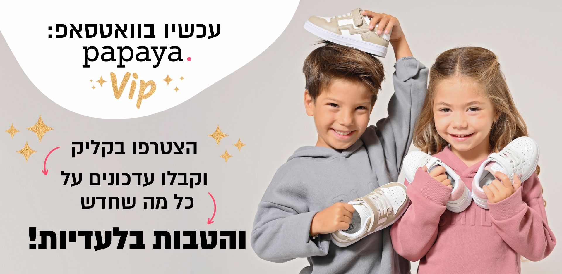 הצטרפו בקליק לקבוצת ה-V.I.P של נעלי פפאיה ב-Whatsapp !